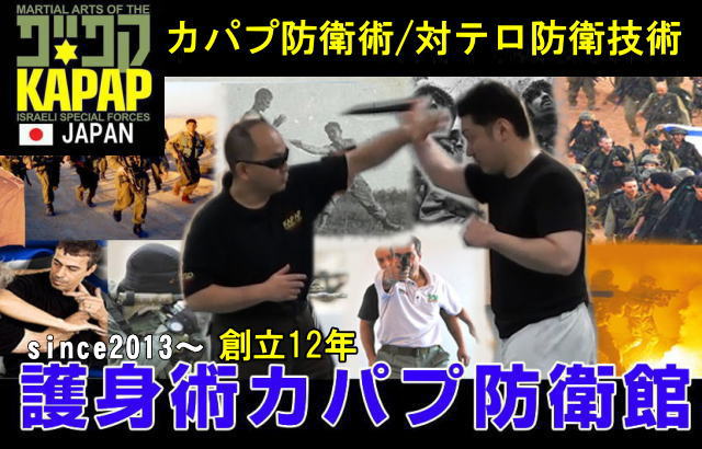 カパプ防衛術は、イスラエル国防軍特殊部隊の近接戦闘術・軍隊格闘技・護身術『KAPAPコンバティブズ』をベースに考案された、カパプ防衛館オリジナルの護身術。
